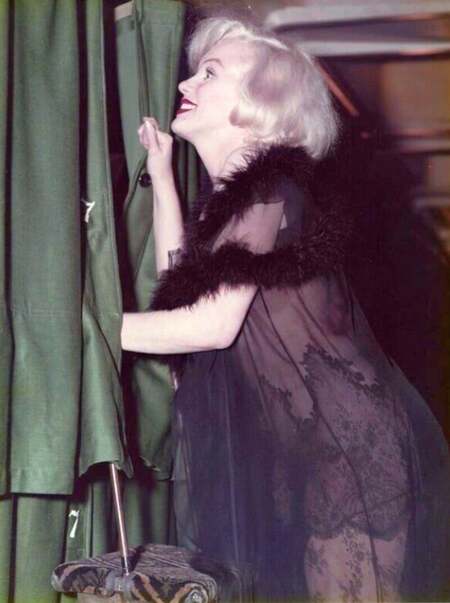 Мерлин Монро в ночной сорочке для фильма «Мы не женаты!», 1951 г.