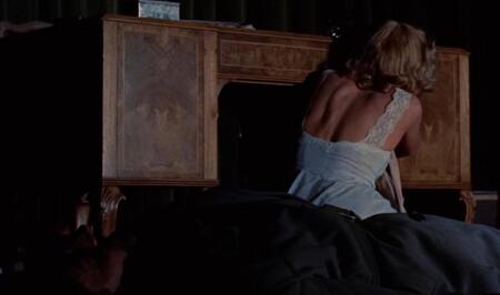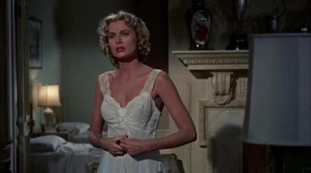 Обнаженная женщина в пространстве семейной спальни. Кадр из фильма «Кошка на раскаленной крыше», 1958 г.