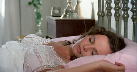 В фильме «Любовницы вампирши» домашняя одежда героинь заигрывает с фантазийным образом: длинные белые и пастельные ночные сорочки с завышенной линией талии, полупрозрачной синтетикой и глубокими вырезами одновременно цитируют «историческое» платье и визуальный язык современной эротической ночнушки. Белизна тканей, голые ступни и текучие силуэты маркируют женскую уязвимость и «невинность», но камера настойчиво задерживается на груди и мягких контурах тела, превращая ночную сорочку способ демонстрации тела. В результате домашняя одежда здесь не быт, а жанровый костюм готического хоррора, где частное пространство спальни становится доступным зрителю.