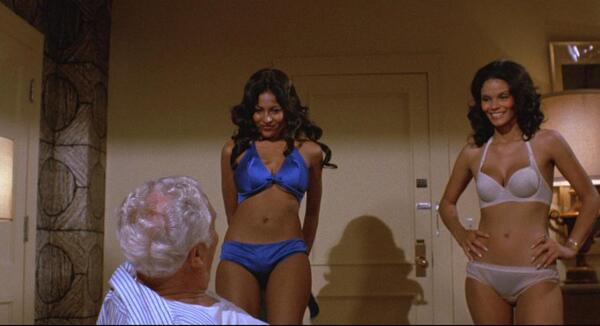 В кино 1970-х годов бельевой образ продолжает использовать уже сложившиеся тропы: женские персонажи в комбинациях, бюстгальтерах и пеньюарах регулярно появляются в комедиях и фильмах ужасов, где белье служит одновременно элементом бытовой ситуации и визуальным акцентом. К ним добавляется новая линия — боевики и криминальные сюжеты, в которых женщины в домашней или полураскрытой одежде показаны рядом с «опасными» мужскими персонажами, подчеркивая контраст между интимным пространством и насилием или угрозой.