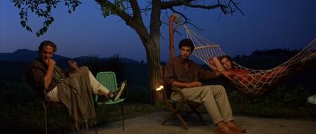 Цвет у Бертолуччи передаёт атмосферу итальянского лета: сухой воздух, выжженные поля, сияние кожи на солнце. Это не яркие, кислотные оттенки, а приглушённые, натуральные.