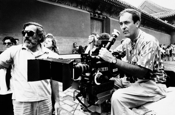 Бернардо Бертолуччи за камерой во время съёмок