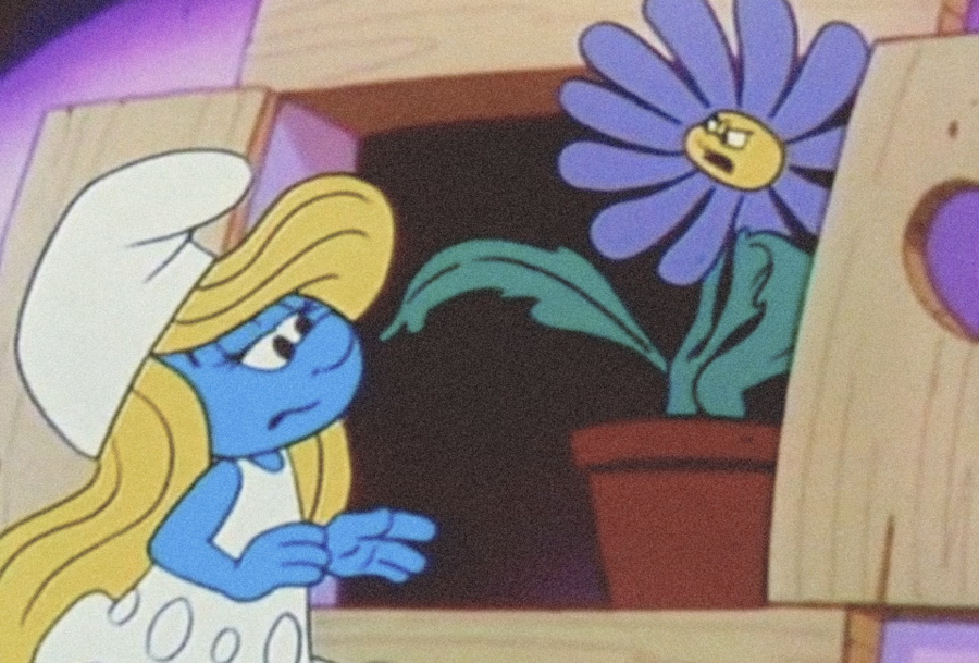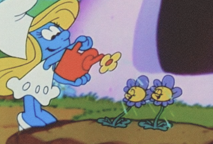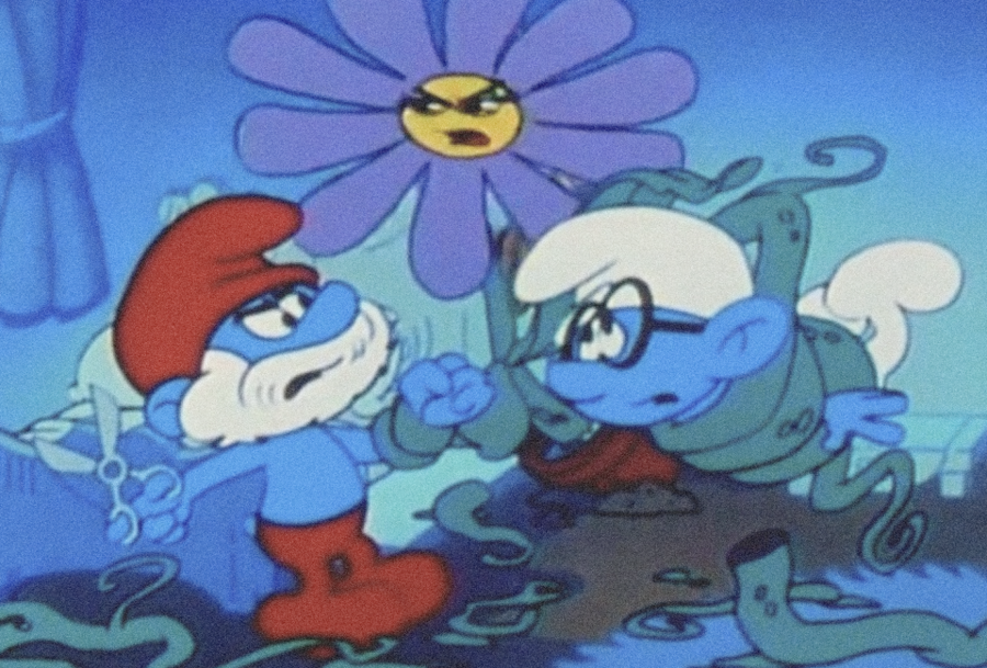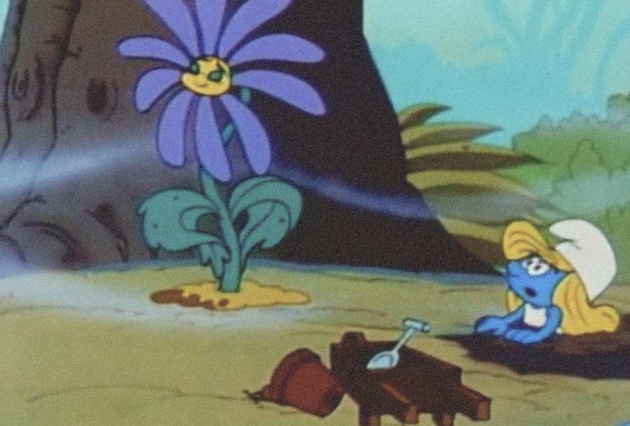 Смурфетта забирает цветок к себе домой, Петалума манипулирует Смурфеттой, кадры из сериала Смурфики