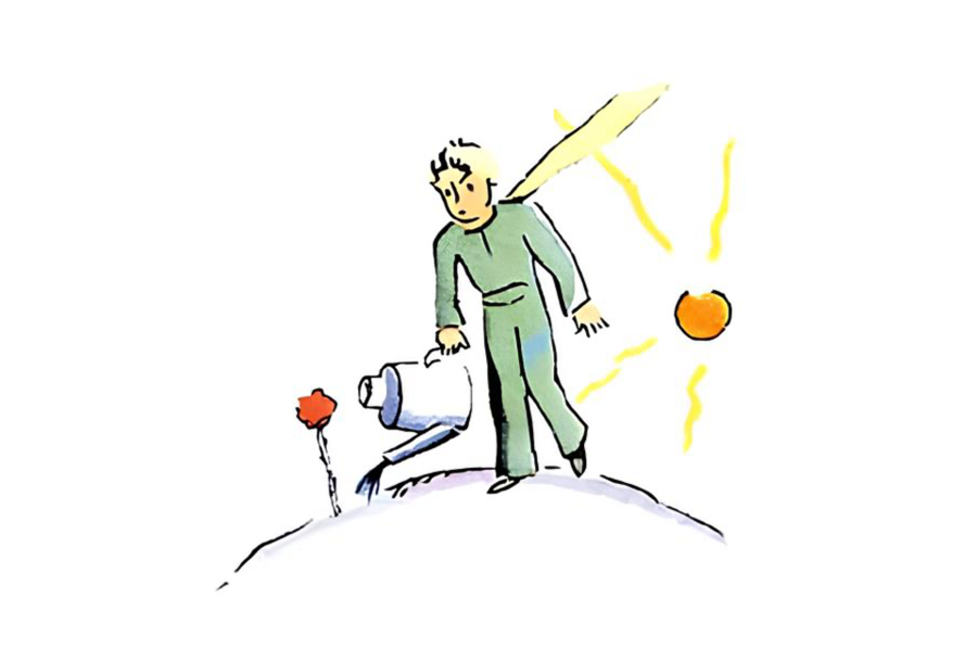 Роза в Маленьком принце — полноценный персонаж, но у неё нет антропоморфных черт. Её эмоции передаются словами, а не визуальными жестами. Ей важно, чтобы он её любил, но она не умеет по-доброму это выразить. Из-за этого между ними бывает недопонимание: она говорит одно, чувствует другое, а Принц не всегда понимает, что стоит за её словами. Несмотря на её капризы, Принцу она очень дорога. Он ухаживает за ней, слушает её, пытается понять. Это его первое сильное чувство к другому живому существу. Он переживает за неё и помнит о ней даже тогда, когда уходит путешествовать по другим планетам. Позже, путешествуя по Земле, Принц видит целый сад из роз и сначала думает, что его роза не такая уж особенная. Но потом понимает, что та роза — уникальная для него. Эта роза — единственная, которым он лично занимался, о которой заботился, которую любил.