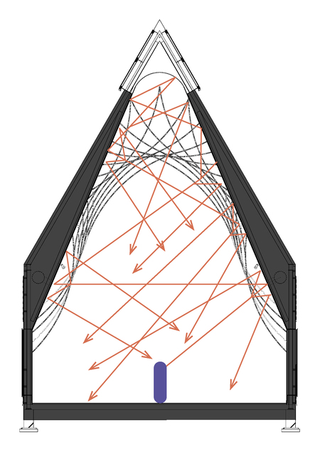 Часовня Св. Вуали в Ниигате, Япония, 2014 г. / схема распространения звука в часовне Св. Вуали