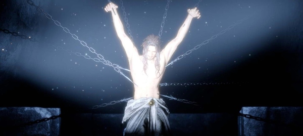 Скриншот из игры «Final Fantasy XV: Episode Ardyn» [2019]. Разработчик: Square Enix. Заточение Ардина на Ангелгарде