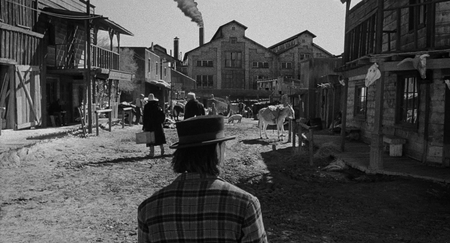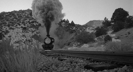 В этом начальном состоянии жизнь Блейка не имеет внутренней сакральной или героической ценности; он абстрактен и неполноценен. Его оторванность от мира проявляется в сцене на поезде: когда попутчики стреляют по бизонам из окон движущегося транспорта, Блейк — единственный, кого это смущает и пугает, что демонстрирует его пассивность и отчужденность. Кроме того, кинематографическая передача его путешествия на поезде, представленная в виде растворяющихся в черном пейзажей, заполненных ржавеющей техникой, передает пафос неизбежности и циклического разрушения, в котором человеческая жизнь рассматривается как нечто преходящее.
