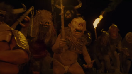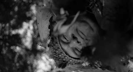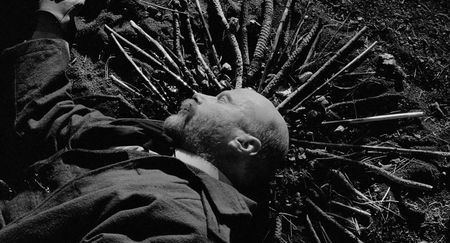 Примером смешения «культурных регистров» является сцена, в которой голова убитого обрамляется «нимбом» из веток, символизируя переход из профанного пространства в сакральное.