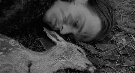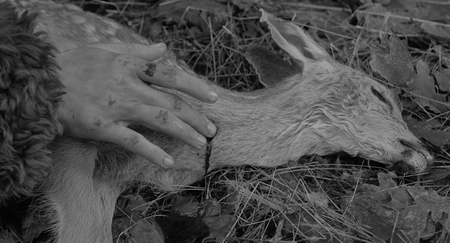 Особенно яркой становится идентификация Уильяма Блейка с беспомощным олененком. В сцене, где бухгалтер ритуально раскрашивает свое лицо кровью мертвого животного происходит перекладывание качеств последнего на главного героя. На этом моменте своего пути он еще не обладает свободой воли — абсолютной субъектностью — а лишь начинает примерять на себя внешнюю, предложенную миром роль случайной, пассивной, безвольной жертвы.