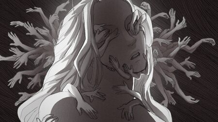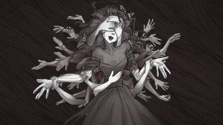 Этот образ символизирует не только все те мучения и страдания, через которые прошла она и ее тиражируемые с каждым новым прохождением копии, но и всемогущество, нематериальную природу, всепроникающую силу Принцессы. Руки заботливо прикрывают глаза героини утверждая уже другой мотив — мотив слепоты. Закрывая глаза, Принцесса отказывается от иллюзорного, поверхностного восприятия реальности. Кроме того, руки, закрывающие лицо, — типичный жест защиты, уязвимости и самоуспокоения. В контексте бесконечных смертей и страданий этот образ можно трактовать как момент самозащиты. Не от внешней угрозы, а от переживания самого опыта насилия. Она создаёт щит из собственных воплощений (рук), чтобы обрести покой.