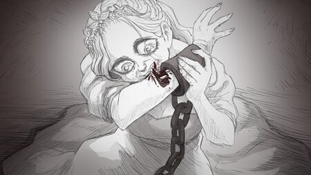 Визуальная трансформация Принцессы выступает прямым выражением обретения воли через путь насилия. Прорезая собственную кожу, но не испытывая видимой боли, она выдвигает из своих рук острые лезвия. Через физическую метаморфозу раскрывается окончательный отказ от уязвимой и пассивной роли. Жертва не просто вооружается, она становится оружием.