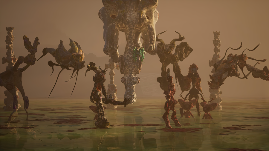 Проект Габриэля Массана был представлен как мультичастная институциональная программа: крупная выставочная версия в Serpentine North сочеталась с цифровым релизом — бесплатной скачиваемой игрой — и с веб3-инициативой, включающей «токенизированные» воспоминания. В экспозиционной постановке интерьер галереи трансформировался в серию уровней и организованных сред, на которых расположены игровые станции, звуковые объекты и скульптурные фрагменты. Структура показа намеренно выстраивала диалог между физическим пространством и виртуальным ландшафтом игры. Сам проект задумывался как «эксперимент в миростроении», где выставка и игра составляют единый рабочий организм: посетитель может играть внутри инсталляции или скачать игру, а выставочные объекты комментируют и визуализируют логику виртуального мира.