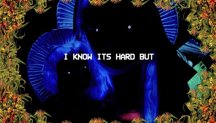 Пространственная структура инсталляции — это коридоры и отдельные «кабины» оформлены как игровые комнаты и кабинеты «психогеографической терапии» — визуально это набор коллажей, экранов, микроскульптур и мест для сидения, окружённых плотным звуком и интенсивной подсветкой. Интонация экспозиции колеблется между фарсом и клиникой — от гротескного сатирического реквизита до инструкций и «моральных» подсказок, адресованных посетителю.