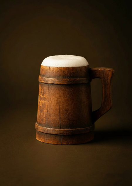 Если кружка была деревянная, то часто была с поверхностной резьбой, если это лесная таверна — с цветочным орнаментом. Местами есть признаки первичной обработки дерева — лак или обжиг.