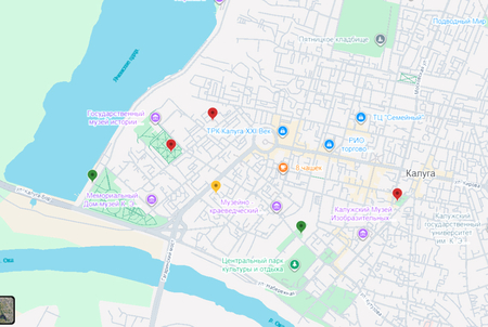 Скриншот карты в приложении Яндекс Карты с включенным слоем «Достопримечательности»