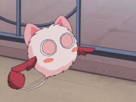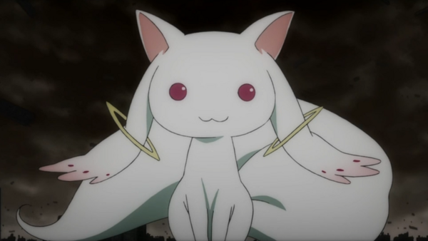 В данном сериале мы видим пример, когда компаньон девочки-волшебницы становится её настоящим врагом. Возникает диссонанс, столкновение контрастов: милый зверёк, рассказывающий про спасение людей от плохих мыслей и исполнение желаний, и жуткое существо, которые намеренно не предупреждает о последствиях выбора девушек и просто использует их.