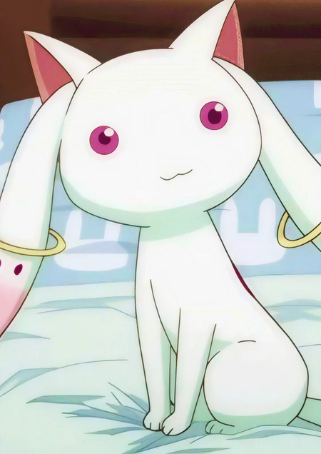Еще один пример волшебного компаньона — это Кьюбей из мультсериала «Девочка-волшебница Мадока». Кьюбей, так же как и его предшественники, обладает милым и безобидным видом, округлыми формами. Он становится для девочек другом, которому они доверяют, так как тот обещает исполнить их заветное желание. Однако, как выясняется, он вовсе не безобидное существо, а инопланетянин высшей расы, которая питается энергией девочек-волшебниц, обреченных на тяжелую судьбу.