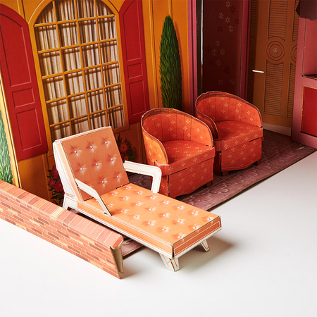 Первая модель «дома мечты» 1962 года была лёгким складным картонным домом-студией, напоминающим модернистские калифорнийские интерьеры. Интерьер строился на печатных графических панелях, создающих иллюзию глубины: полки с книгами, современная акустика, стильная мебель без лишнего декора.