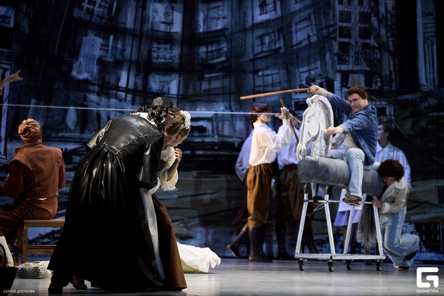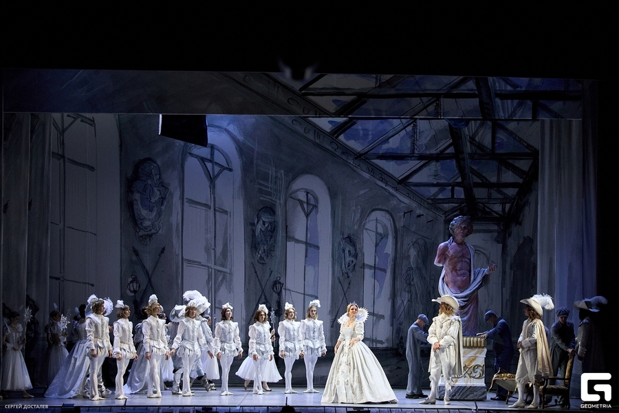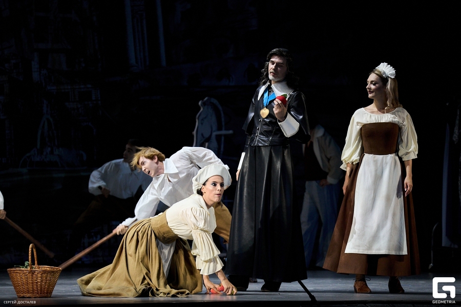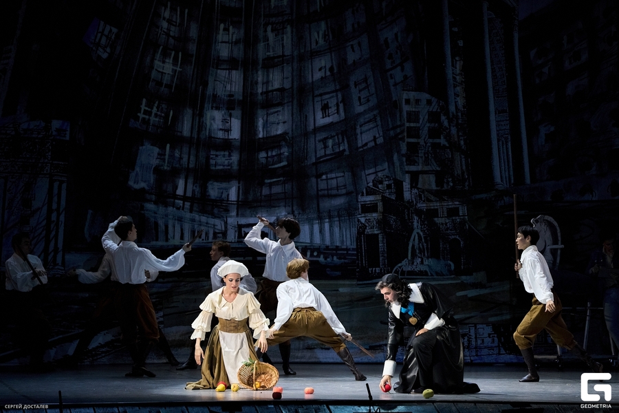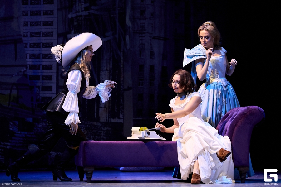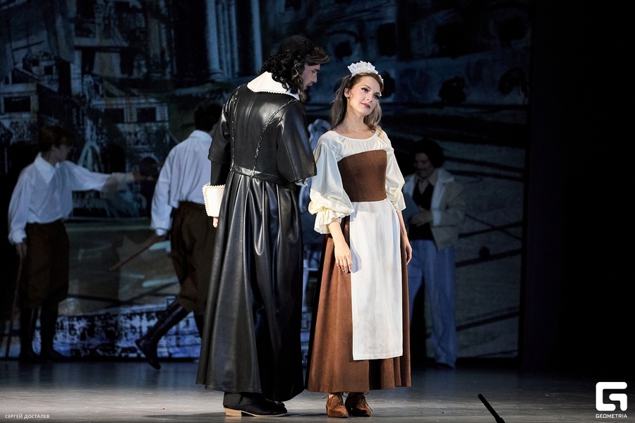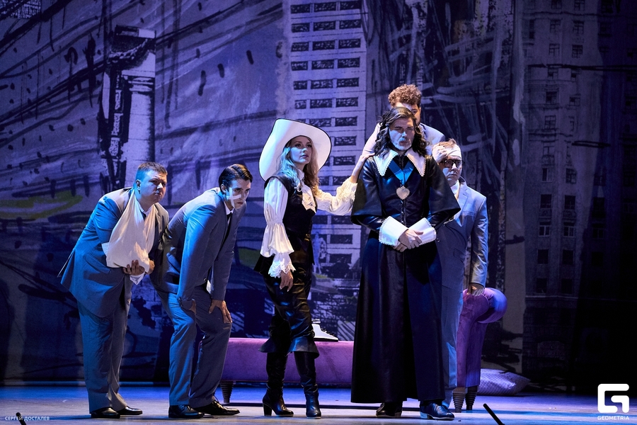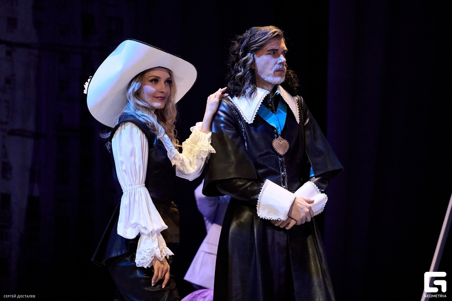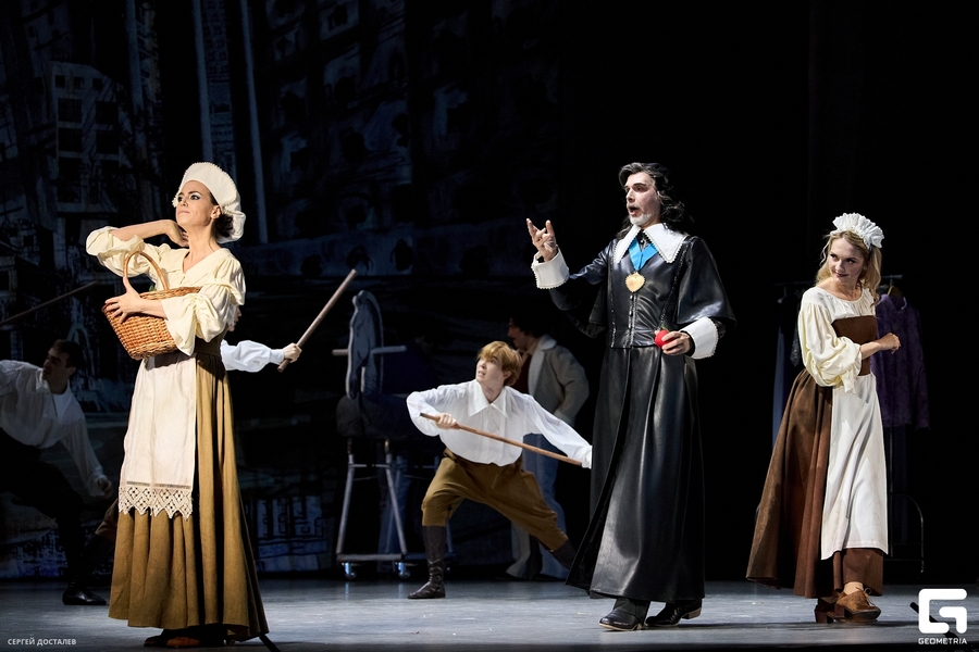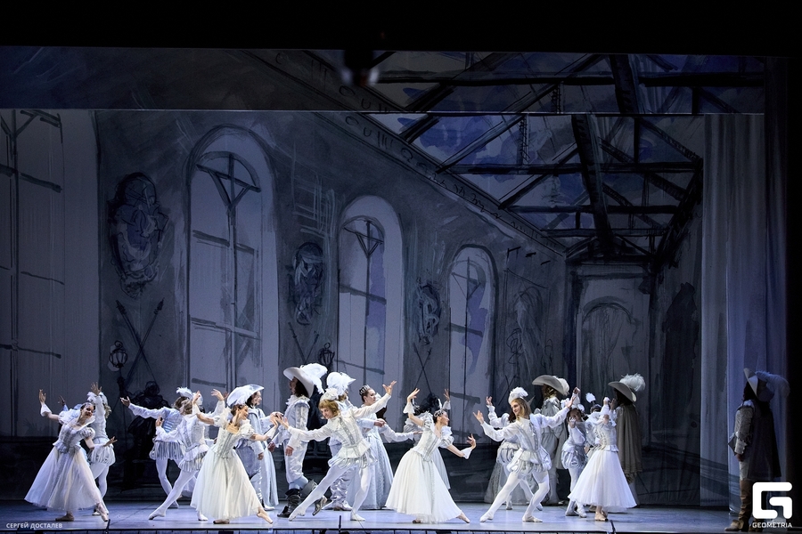 Сценография Валерия Кошлякова объединила сцену с оперой, соединив эпоху СССР начала 1970-х и Францию времен Людовика XIII.