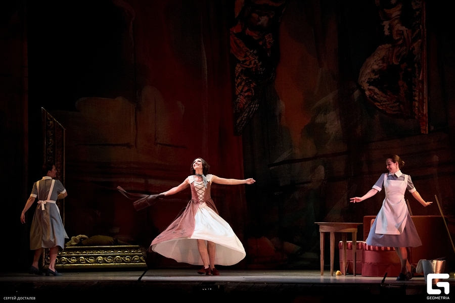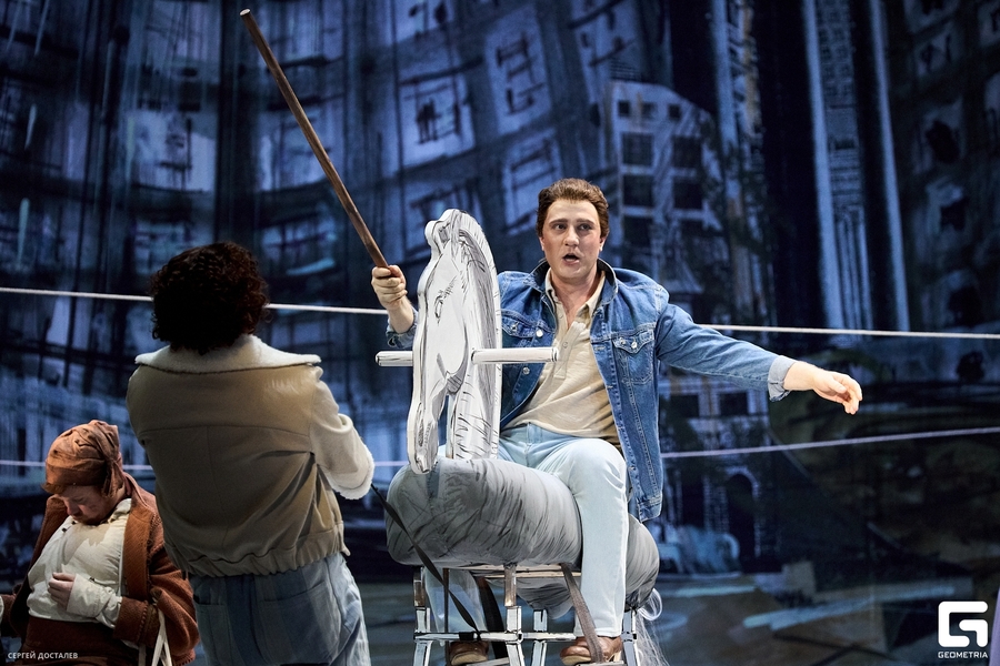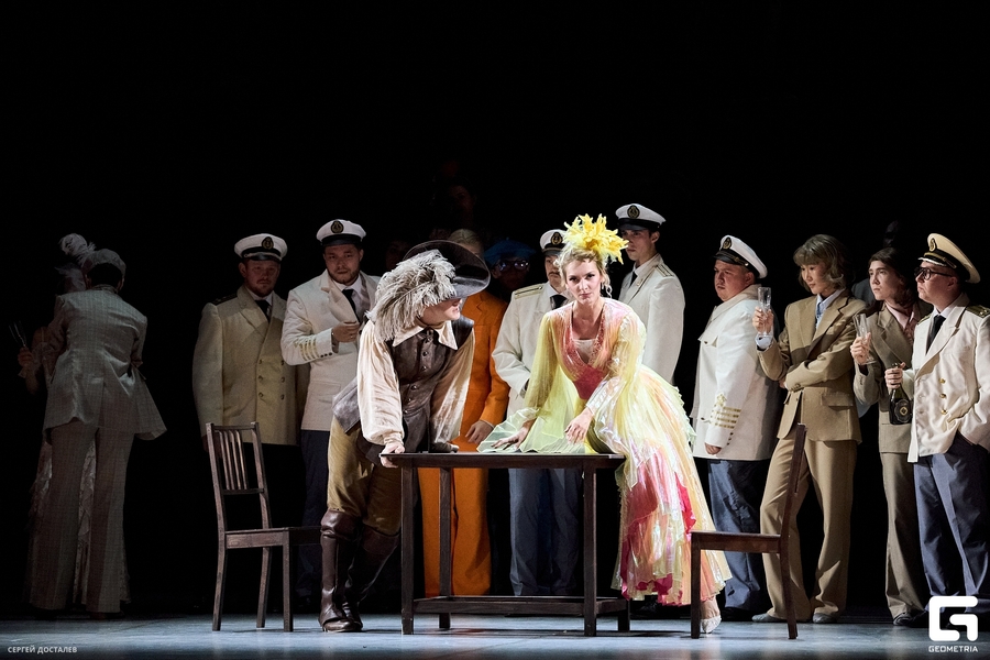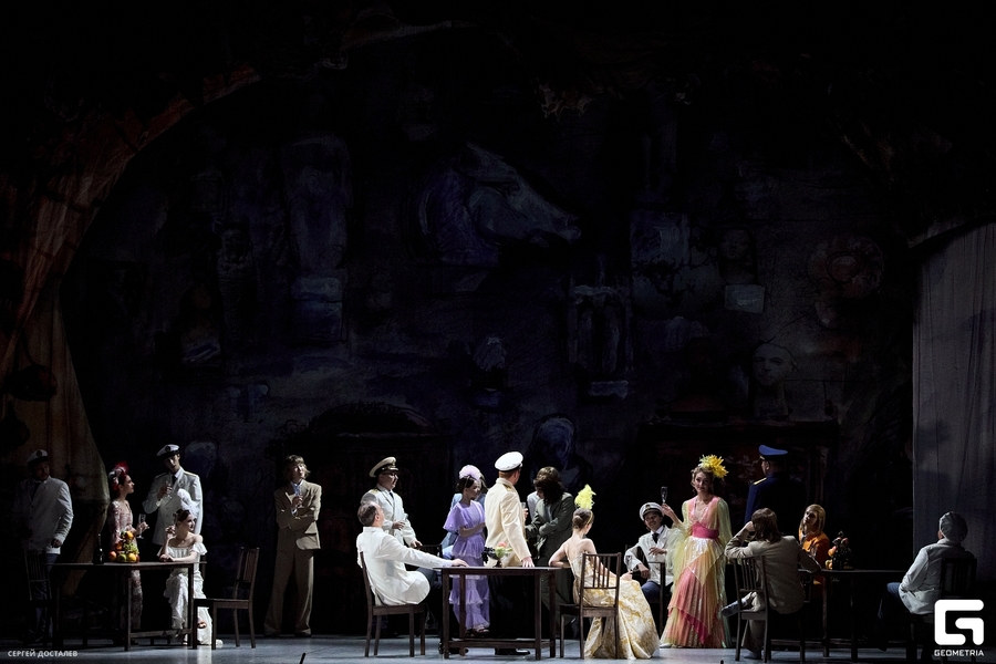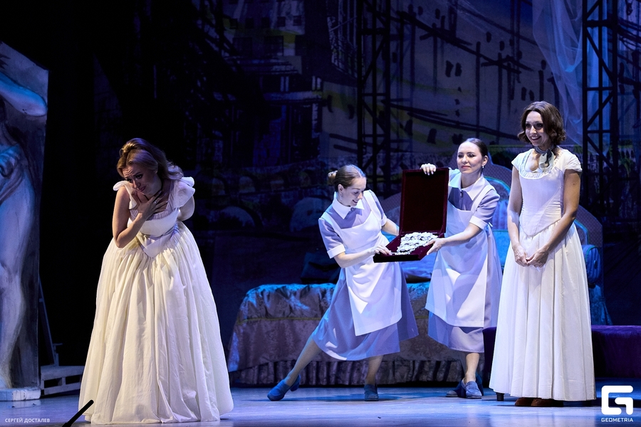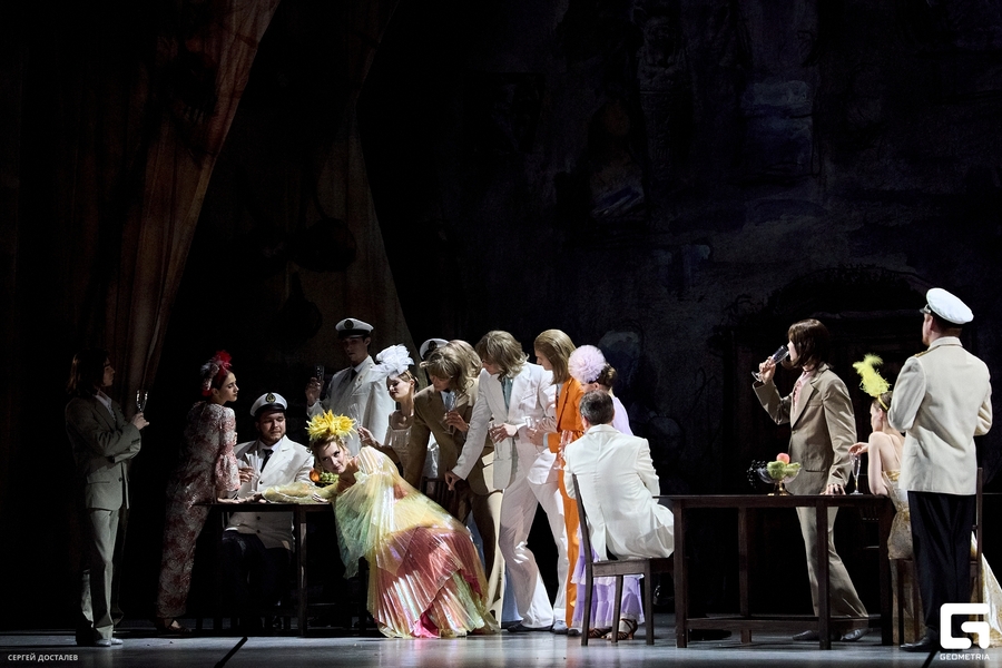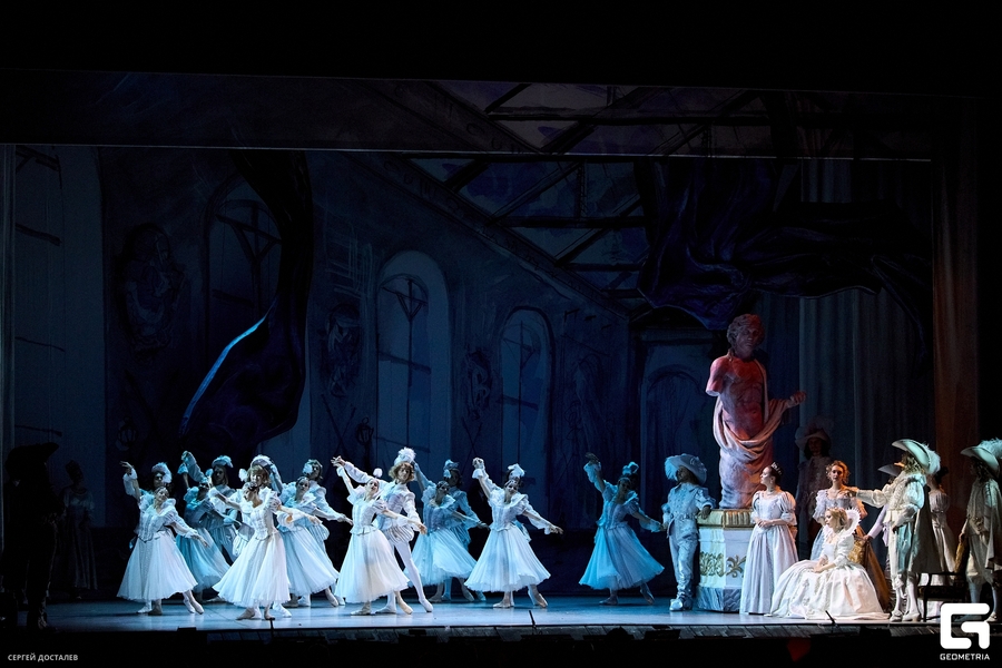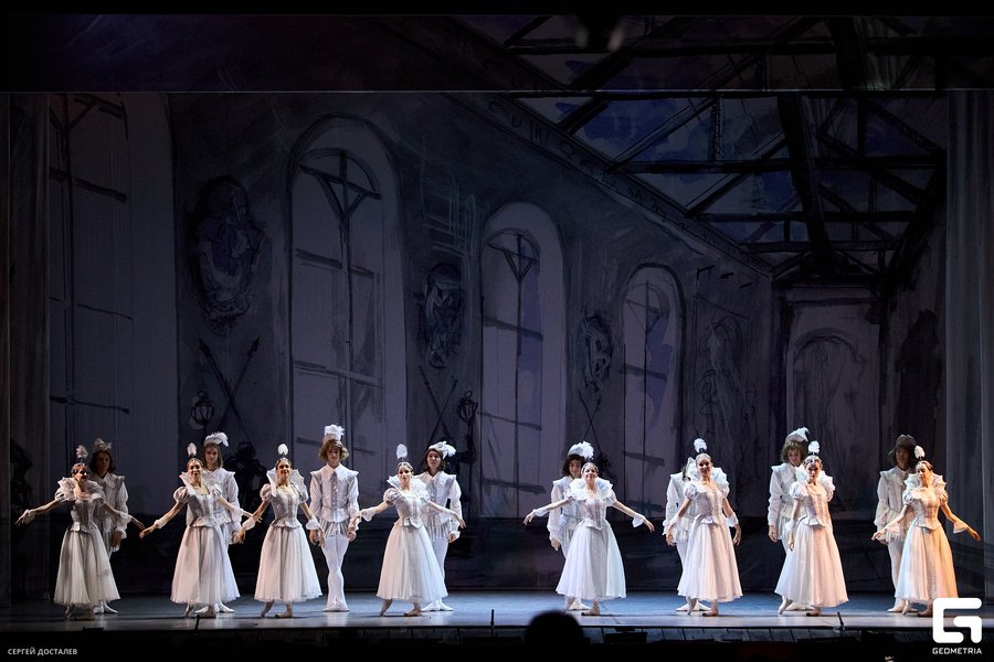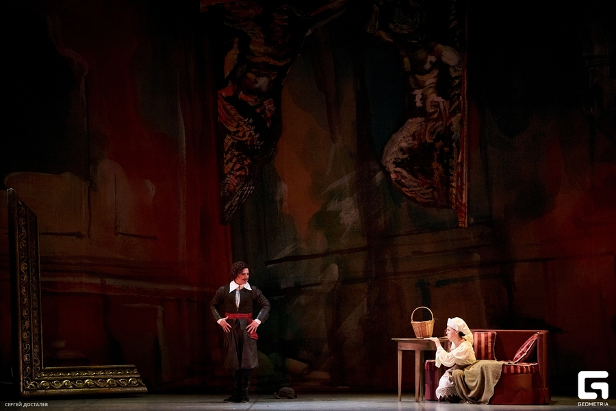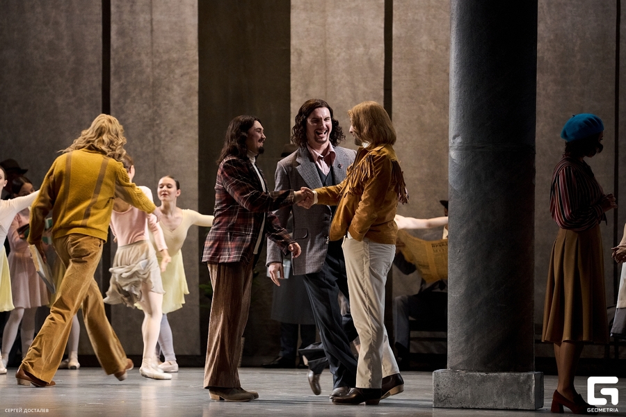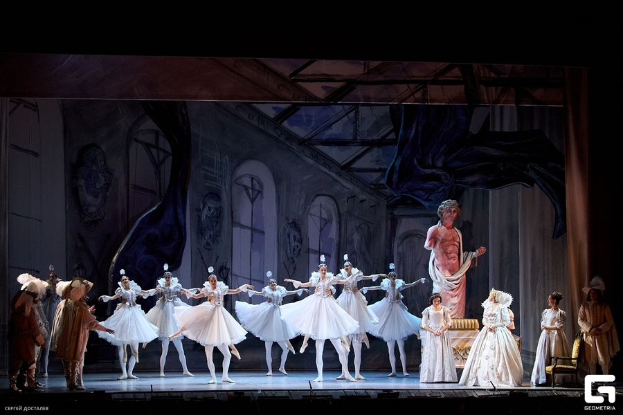 Сценография Валерия Кошлякова объединила сцену с оперой, соединив эпоху СССР начала 1970-х и Францию времен Людовика XIII.