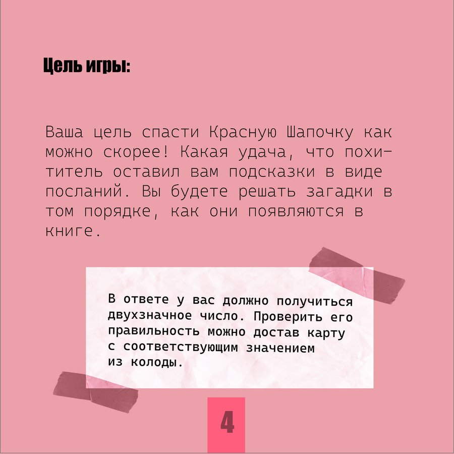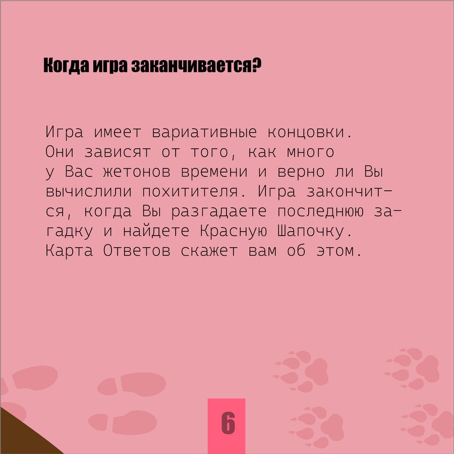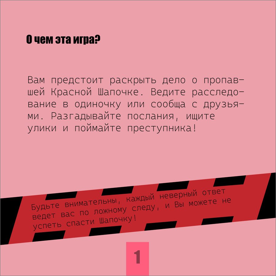 К Вам стучатся соседские мальчишки, которые последними видели девочку. Они протягивают загадочное письмо… Расследуйте исчезновение Красной Шапочки и верните ее домой (по возможности).