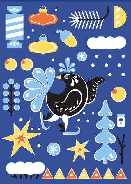 и сувенирной продукции. Переосмысление традиционной городецкой росписи на примере иллюстраций для календаря. Каждая иллюстрация посвящена определённому времени года.