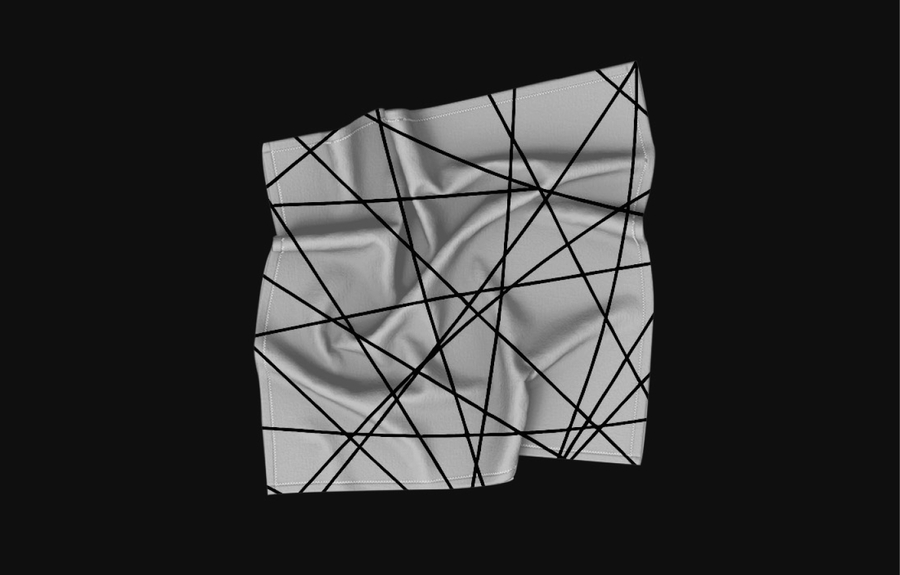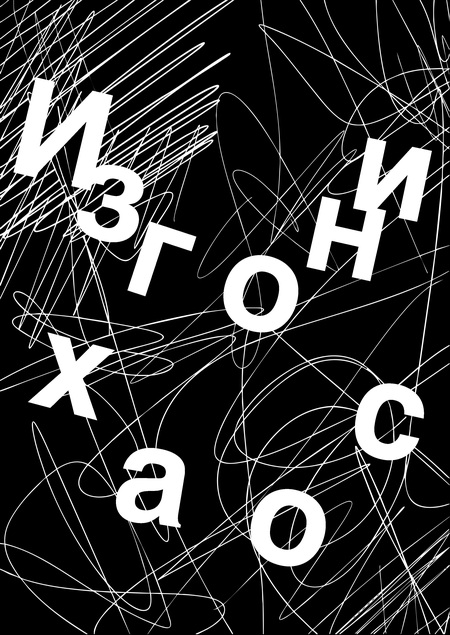A chaotic abstract drawing with multiple overlapping black/white scribbles and curved lines on a white/black background, creating a complex, tangled pattern with no distinct shapes or forms