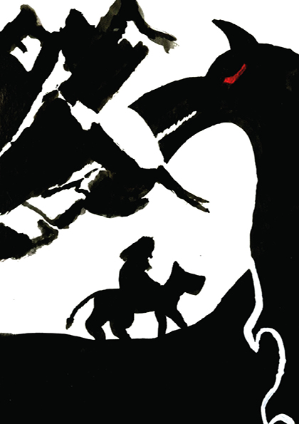 Мифы обладают весьма мрачным характером, поэтому в качестве основного материала была выбрана черная тушь, которую разбавляет цветной маркер.