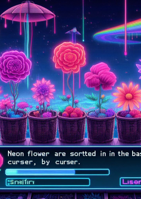 videogame screenshot, screenshot from the game, neon flowers are sorted in the baskets by cursor, lsd visuals, video game screenshot, alien and surreal waiizi flower