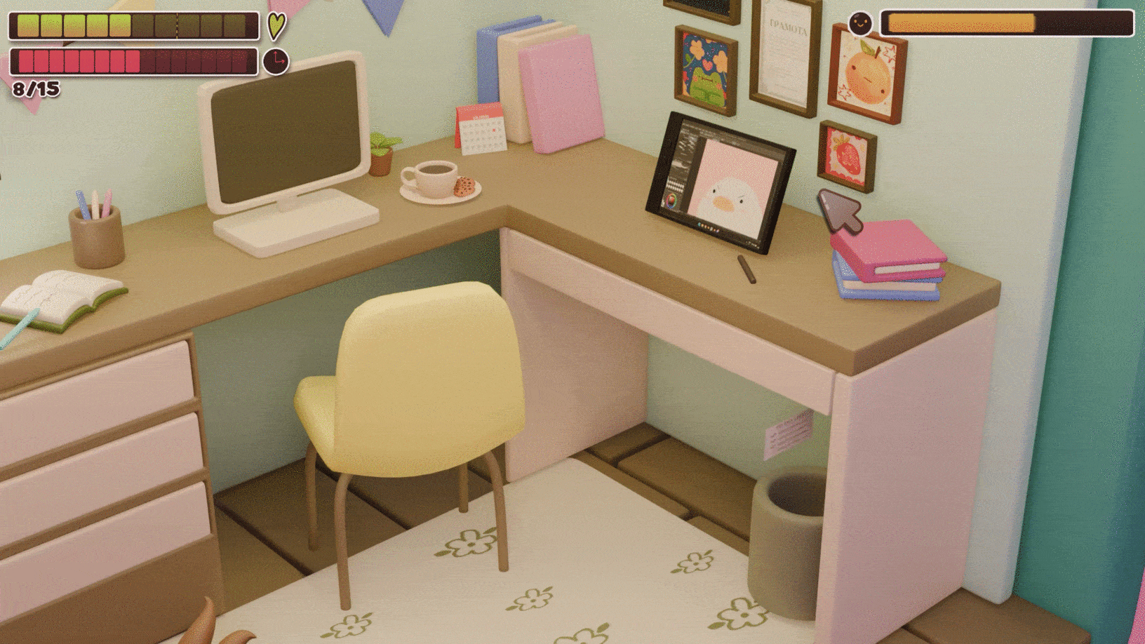 Шкала счастья — отмечает текущее эмоциональное состояние. Шкала заполняется, когда игрок находит причины для счастья.