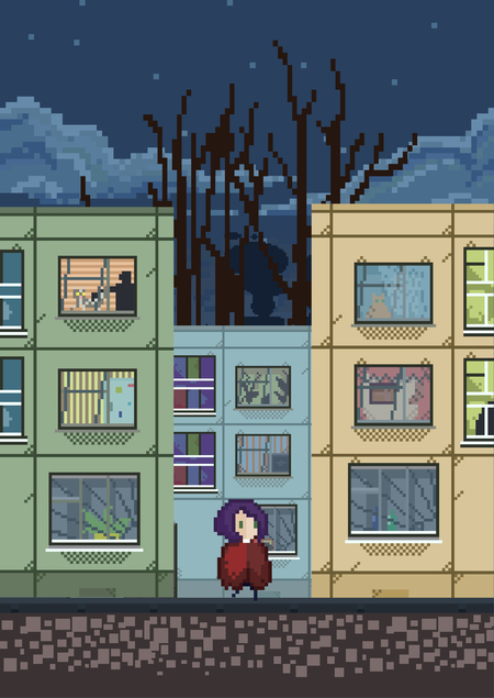 2D пиксельный платформер. Мальчик Давид возвращается домой с учёбы по запутанным улицам. Избегай встреч с ментурой и сваливай от гопоты на улицах аутентичного российского городка!