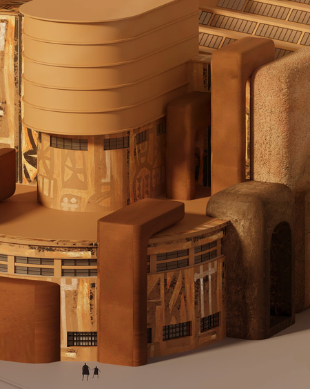 Концепция фасада выстраивалась детально по маленьким кусочкам. В моей работе было важно показать совокупность всего, что собрала в себе выставка. Я решила сделать африканское глиняное здание в стиле кубизма в Петербурге. Оно сочетает в себе разные эмоции и чувства, но самое важное было дать человеку почувствовать себя частью чего-то большего!