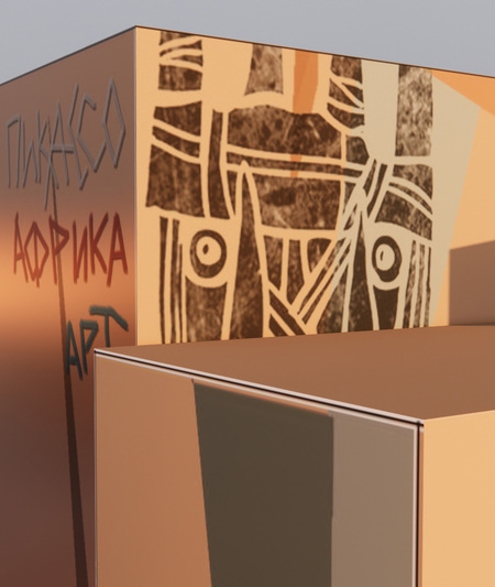 Мой проект посвящен временным фасадам к веставке Пабло Пикассо и африканских масок — «Диалог культур». Возрождающийся кубизм Пикассо один из самых увлекательных моментов в его истории, поэтому я подошла к этой теме с особенным трепетом. Получилось посмотреть на его творчество и со стороны нового зрителя и со стороны уже изучающего человека.