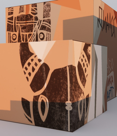 Концепция данного фасада заключается в том, как можно объединить два искусства лаконично, понятно и просто. Чтобы у зрителя сразу создавалось понимание о чем говорится на фасаде по первому его взгляду. Задник фасада сделан из кубической версии самой известной картины африканского периода Пабло Пикассо «Авиньонские девицы». Все также разбавлено первобытным шрифтом и необычными масками.