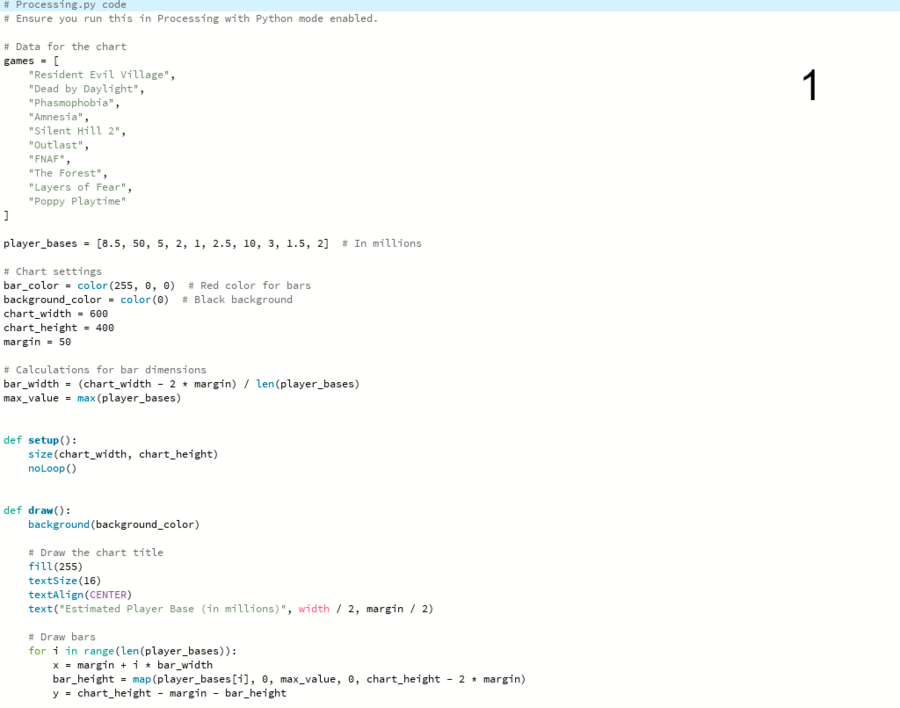 Статистика самых популярных хоррор-игр. Столбчатая диаграмма и код в Processing.