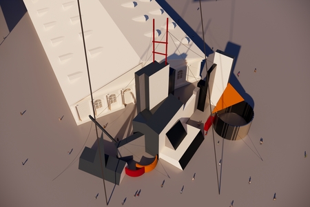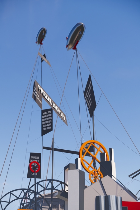 The project focuses on the creation of Love Popova. It was carried out in a spirit of designism and reflected the ideas of a revolutionary vanguard. Architectural facade is a design carried out by an artist’s project for theatre production.