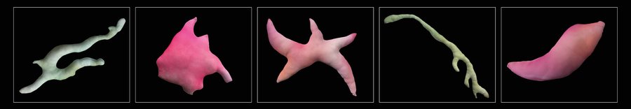 Для объектов инсталляции мы использовали контуры мазков с картин Елены Филаретовой из серий «Лес» и «Сад»