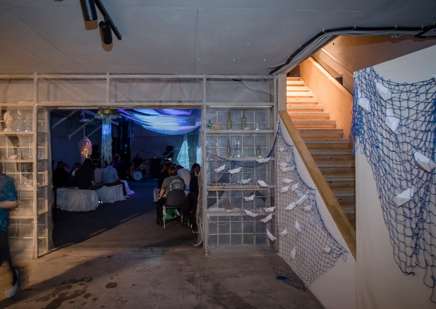 Идея ивента — путешествие вдаль, вглубь и даже ввысь. Событие вовлечет видеопроекции и перформативные интеграции с разномасштабными куклами подводных обитателей. Тотальная аудио-световая инсталляция окунет посетителей в мерцающие водные глубины и проведет к самому краю земли.