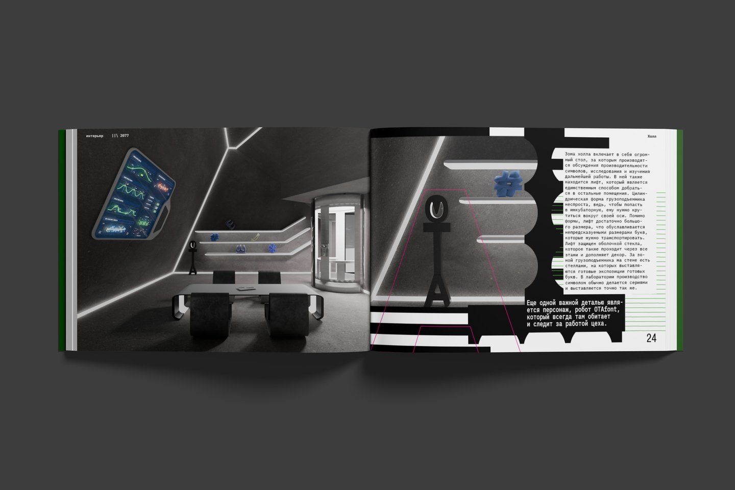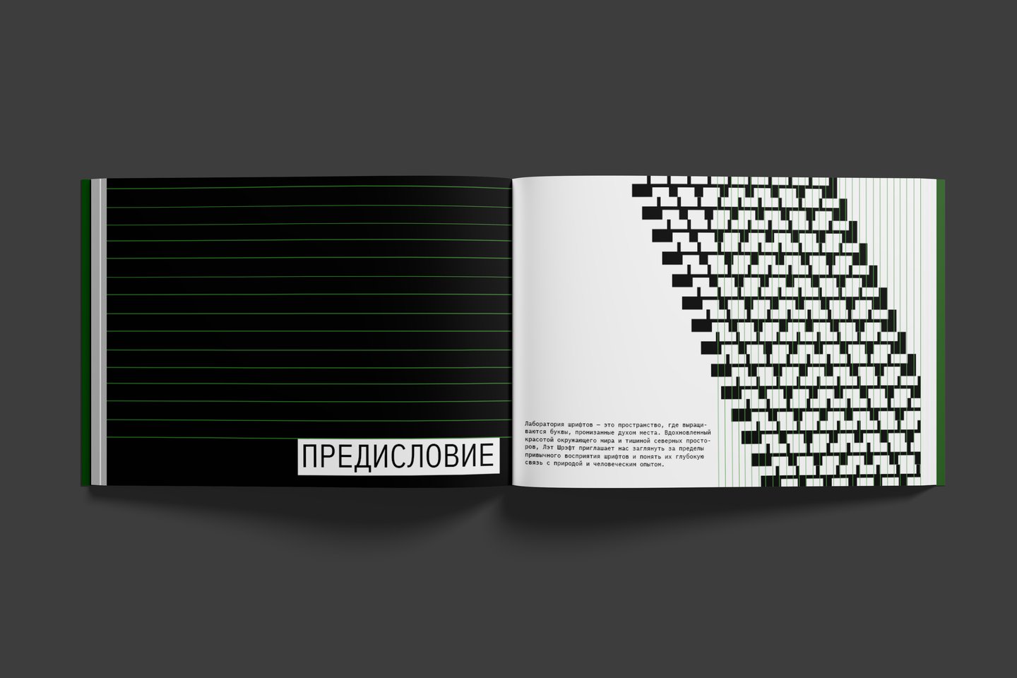 FONT LABORATORY — производственное пространство по выращиванию букв и шрифтов, именуемое секретной базой, находящейся вне зоны цивилизации. Особенность цеха — производство литер нестандартными способами.