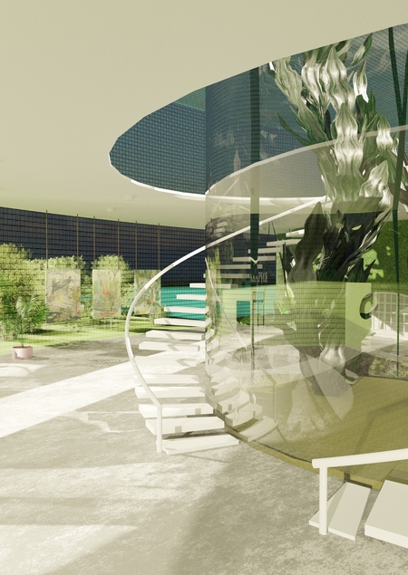 Здание театра отсылает нас к болоту, месту, где обитают лягушки. В интерьере присутствует обильное количество растений, стены из мха, каменные лавочки и многое другое.
