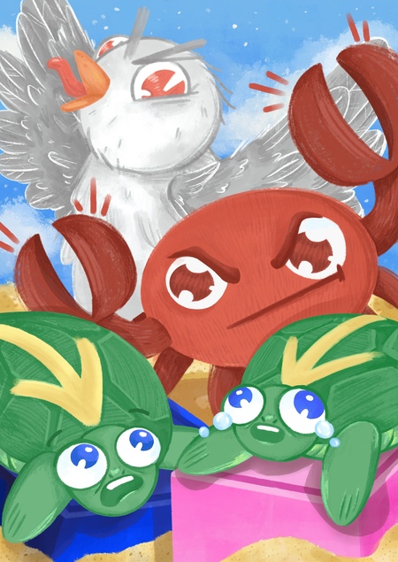 Осторожно, черепаший суп появился не просто так! Чайки и крабы охотятся за малышами, веди их осторожно.