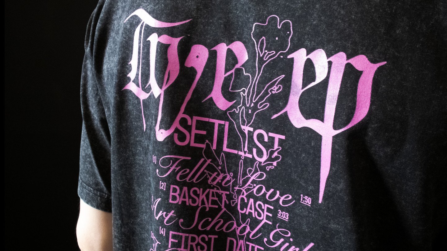 Визуальный образ основан на приемах, характерных для поп-панка 1990-х—2000-х: сложная шрифтовая пара, эклектичная готика, рисунки, эмоциональное цветовое сочетание.