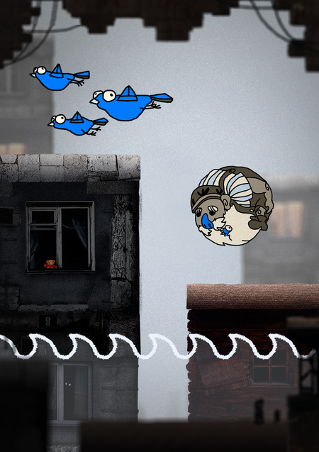 2D видеоигра жанра аркадного платформера про деда-голубевода, спасающегося от глобального наводнения.