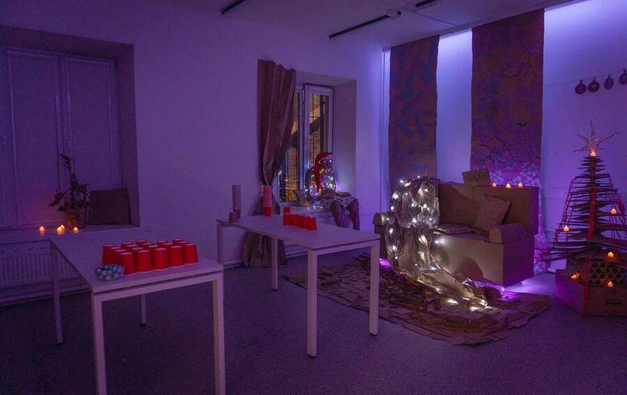 В процессе создания увлекательной и запоминающейся атмосферы для новогоднего квеста мы разработали уникальную концепцию декораций, основанную на уюте и женственности квартиры Моники. Основные акценты были сделаны на использовании крафтовых материалов.
