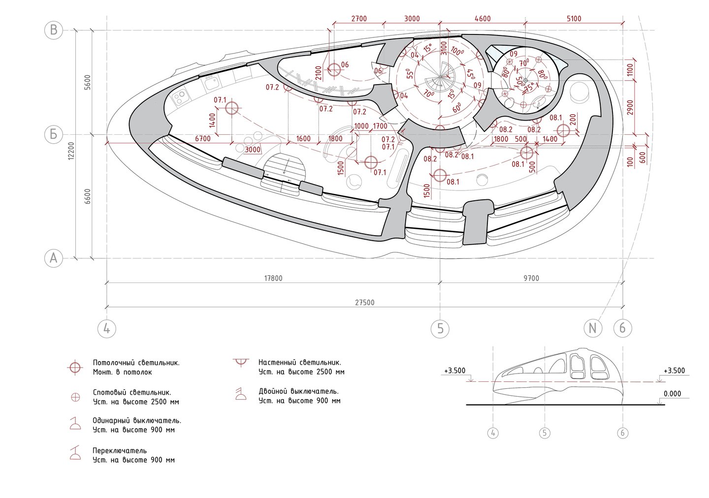 Планы освещения 0,1,2 этаж