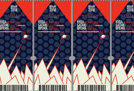 Постер про очередь Промпт: poster with inscription «KOMCOMOLKA» large line of old people in red scarves to the rocket in space