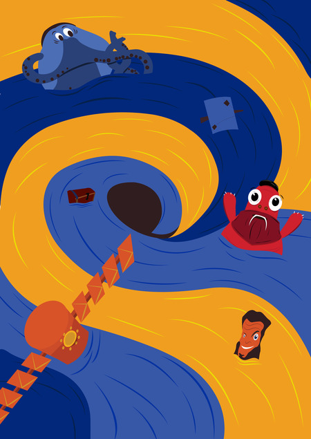 Дуэльная настольная игра. Вы играете за чудиков, к которым на планету в океан жиж упал человеческий корабль. Вам захотелось съесть людей, однако в океане много течений, затрудняющих поиск.