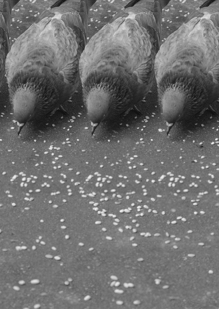 Проект «Стихийное жранье» основан на труде А. Гастева «Как надо работать» 1922 г. о стандартизации и нормировании человеческого труда. Работы отсылают и переплетаются с идеями конструктивистской архитектуры раннего Советского Союза. Исходные материалы для фоторабот отсняты в жилом квартале «Абельмановская застава» Таганского района Москвы.