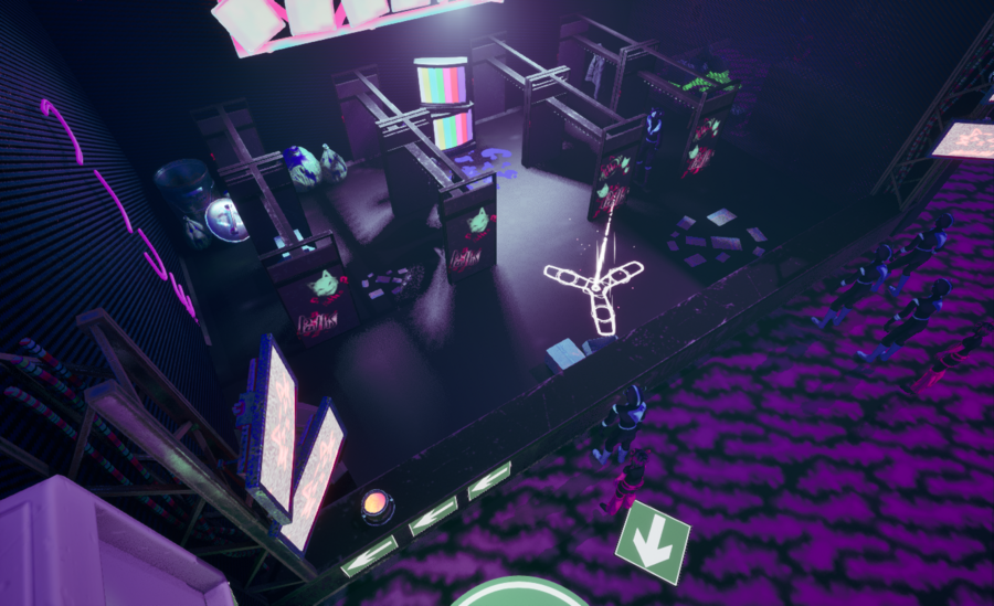 На страже порядка стоит охранник клуба, чья задача — помешать игре продюсера в кошки-мышки с публикой.