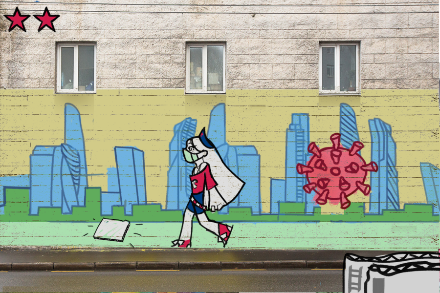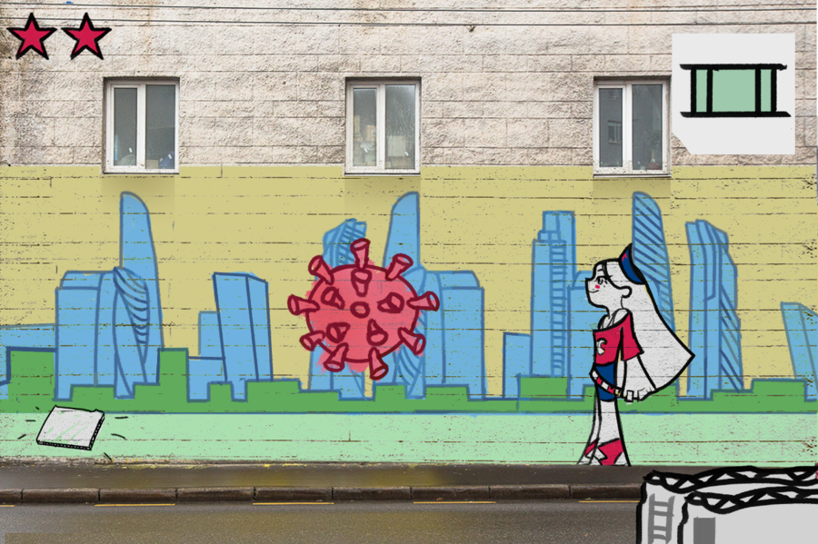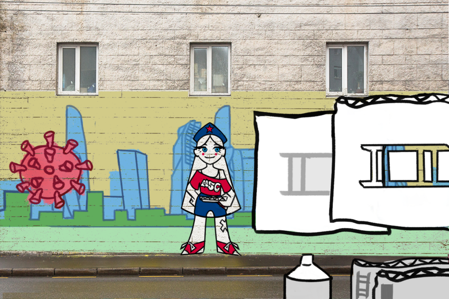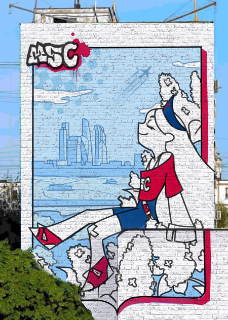 Главная героиня Саша — граффити на стене жилого дома. Изначально концепт героини был совершенно другим, но я решила его переработать, чтобы он отражал Москву.